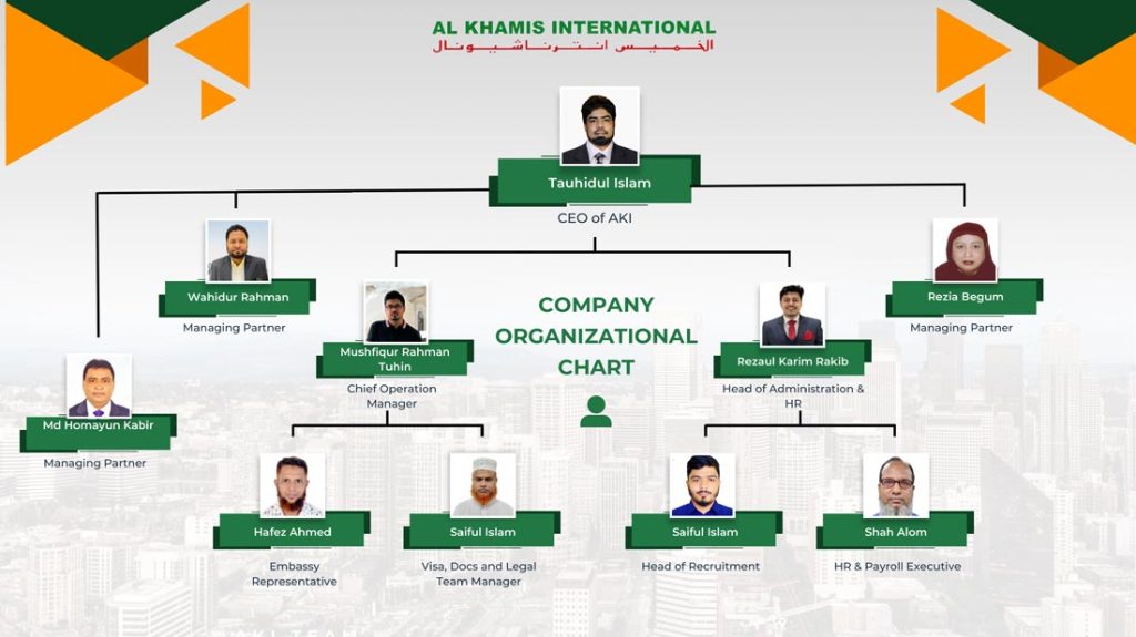At Al-Khamis International, we believe that behind every successful overseas placement is a dedicated, skilled, and highly coordinated team. With decades of combined experience in manpower recruitment, our leadership and staff ensure that every process—from client communication to worker deployment—is handled with precision and professionalism.
